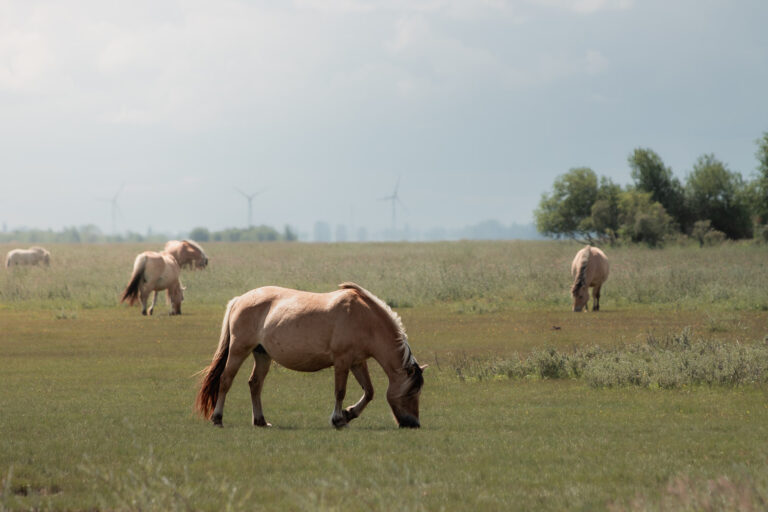 Vanuit Dirksland fiets je in een kwartiertje naar Slikken van Flakkee. Dit reservaat wordt beheerd door Staatsbosbeheer en de natuur heeft hier vrij spel. Vanaf de uitkijkplaats loop je via de vogel kijkwand naar de aanlegsteiger. Grote kans dat je onderweg de fjordenpaarden en andere grote grazers ziet. Als je geen foto’s maakt kun je in ongeveer 40 minuten aan het water van de Grevelingen staan. Mijn looptijd liep dus nogal op. In de zomerperioden van 6 juli t/m 1 september is de slagboom open en zou je dus eventueel met de auto naar de steiger kunnen rijden.